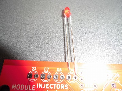 ちなみに、LEDの+は、基板の〇に差し込みます。