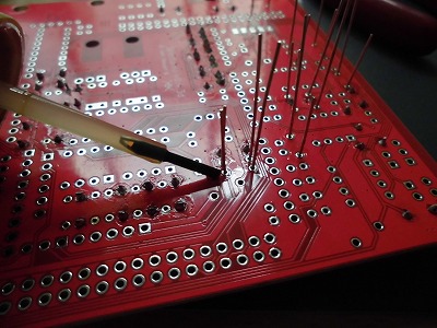 ちなみにはんだは、1フラックスを塗る。2基板と配線を温める3はんだを溶かす。