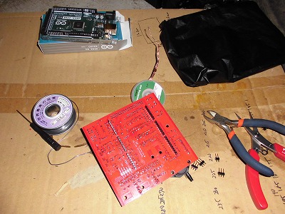 ArduinoMEGAはPINコネクターを写真のように基板裏に付けます。