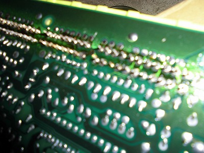 フラックスを塗って、はんだを吸い取り取り外すことに成功しました。
