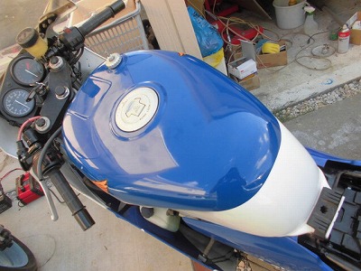 前回ブレーキのオーバーホールも終わり引きづりがなくなったのでテスト走行へ! アイドリングが低かったので直してGO! しかーし。メインガレージに押して帰ってきました。 そうです。エンジンSTOPです。 ![]() 何かがおかしい。 ガソリン入れるとエンジンかかったりするが、そのうちかからない。 キャブをオーバーホールするとエンジンかかったり、かからなかったり。 「普通修理」から「まじ修理」に移ります。※ワンパンマン まあ、今回はレストアしていない修理車両だったので、全バラ。全塗装。組み立てほ方が良かったかも。 あっ。この写真はMC16のタンクを取り付ける際に、「ゴムはどうやって付けるんだっけぇ」と毎回悩むので、数年後の修理のために掲載しておきます。 ![]() ![]() 点火系? 前回CDIを専用品ではなく、中国の他バイク流用品交換でエンジンがかかるようになった。 そこで、次はコイルを疑っているのですが、これも専用品だと高いので流用できる格安品のコイル購入。 だって、MC16用として販売しているのが中古しかない。 どうせ、コイルなんて流用できるし、単純なので・・・ということでコイルも流用です。 ![]() ![]() もちろんチェンジニアではないので、故障を確認したいので抵抗を計測するが故障はしていない? ※MC16用の整備書がないので、正しいか不明? ![]() キャップが合わない。 ※プラグの先端が小型のもあるので合わないこともある。 ![]() ![]() 知っている人も多い? YouTUBEにも掲載されている? ですが、念のため解説しておきますがプラグキャップは単純。 木ねじで差し込んで接点を作っているだけなので、左回りに回せば取れます。 ※差しているだけのもありますけどね。 ![]() ![]() 流用品も同じように取り外します。 取り換えれば完了です。 あまり壊れる部分ではないので、私はこのスパーク関連のコード類は基本修理するのですが、車は一体成型も多いです。 まあ、機会があったら専用コネクター作成記事を記載するかも・・・ でね。 交換してもかかったり、かからなかったりを繰り返すので、コイルは問題ないようです。 そのうち戻しておきます。 ![]() ![]() そしたら、今度はガソリンが漏れだした。フロート確認だぁ。 ![]() 3MAと違い、NSRは簡単にキャブが取れるので楽です。 キースターとかいう日本製?のオーバーホールキットにあった燃料の栓をする部品(右)です。 左の元ついていた純正?より押し込む部分のばねが硬いので純正にもどしたのですが組むコムが燃料の漏れは止まらず。 結果、再々取り外してフロート本体を調整して漏れなくなりました。 この車両過去いじった? ![]() ![]() でね。 さらに問題が続く。 暗くなって気づいてのですが、電気をオフにしてもポジションランプがついていることが判明。 どうやっても切れないのでバッテリーマイナス端子を外しました。 ![]() ![]() さらに、私はフロントをばらして無いのですが、この違和感わかります。 ![]() ![]() これが正しいです。※と思います。 ![]() なんかこの車両怪しく感じてきました。 中途半端に修理されていると、何が原因か判明しづらくなるパターンの車両だと感じております。 カウルも全とっかえ(赤→青)されていたし・・・ 車は、「レストア途中」というのが修理で一番難しい車両になるんですよね。 古い車を買う場合は、基本修理されていない車がベスト。 ※今となっては、古いバイクや車に価値が出てしまい「とりあえず修理」して販売しちゃうのがふつうですけどね。 なので、ここからはMC16の整備書をきちんと購入して、すべてを疑う事にしました。 そこで、改めてプラグの点火チェック。 動画はこちら よくよくみると上エンジンは電気がオレンジで強いのですが、下側が弱いんですよ。 なので、流用CDIも含めて調査していきます。 あとは、エンジンが「バフ」と爆発した感じになることもあったので、点火タイミングも問題かもと考えております。 点火タイミングを見る部品。こちらも専用品ではなく流用品を探しておきたいと思います。 ![]() 点火に問題? なのでレギュレータも怪しく感じているので、こちらも2000円程度の合いそうな流用品を探して購入。 ボディーのネジ穴はドンピシャ!!!えらい!俺! あとは、この部品の電気部分は単純なので加工すれば付ければ使えると思います。 だって、MC16専用として新品が売っていたのですが、12000円弱。 部品の価格と製品の価格が合わないし、専用品での交換では何の技術もいらないので、 中国の流用品で組んで使えるのかテストする方向で「いきま〜す」※ガンダム ![]() ![]() もちろん、配線は余計なのがあるので線の色で想像! コネクターを加工(MC16にあうように交換)する予定でおります。 これで問題切り分け出来ますね。 ![]() ![]() 番外編 バイクは外で修理していたのですが、今年は暑すぎた。 ガレージでも作業できるようにサボっていたエアコン(引っ越しで4回目なので・・・)のガスチャージをして修理しておきました。 でも作業スペース