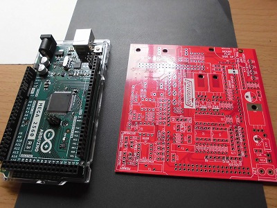 ArduinoMEGAはPINコネクターを写真のように基板裏に付けます。