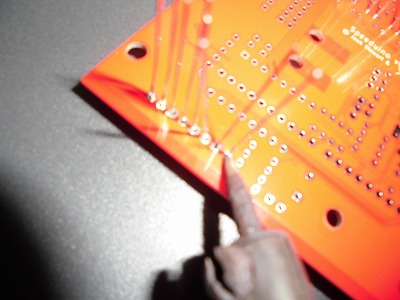 ちなみに、LEDの+は、基板の〇に差し込みます。