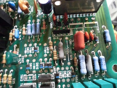 番号と回路図を確認しないと何用なのかはわかりませんが、気になる部品を取り外しました。