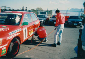 実は安部さんは、EP82のワンメークレース、第1戦でメカニックとして参加。しかし、いきなり予選4位、安部さんの周りにはTOM’Sの関係者が集まってきた。それもそのはず、上位3台はワークスだった。もちろん突然上位に現れた安部さんの車を怪しいと思ったのは当然である。安部さんが違反をしているのではないかと調査が入った。(下記写真)