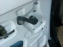 1.ガラスの隙間を埋めるゴムがぼろぼろで、取り付けのときも大変でした。まず、ゴム用の接着剤である程度形を作ってドアにつけました、そのとき、そのままだと落ちてくるので、両面テープ(トタン屋根とかに使うもの)で止めました。