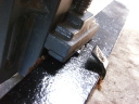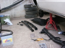 4.次にカヤバ新品ガスショックです。オークションで3000円で購入!感謝以前ついていたものは異様に細いのが写真でわかるかと思います。これは簡単に装着できました。RX-7のガイドを参考にすると良いと思います。ほとんど同じです。ただ、右と左で位置が違います。それが正常のようです。